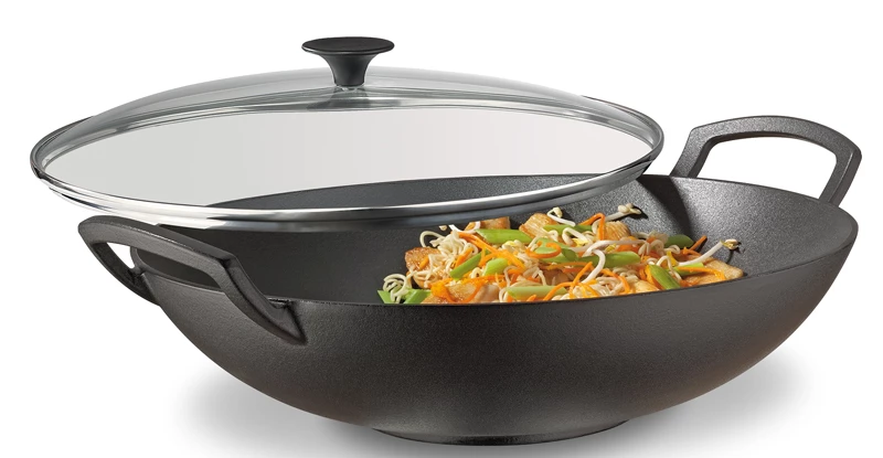 Spring Wok-Set, Gusseisen, Mit Glasdeckel, 35 Cm Wok