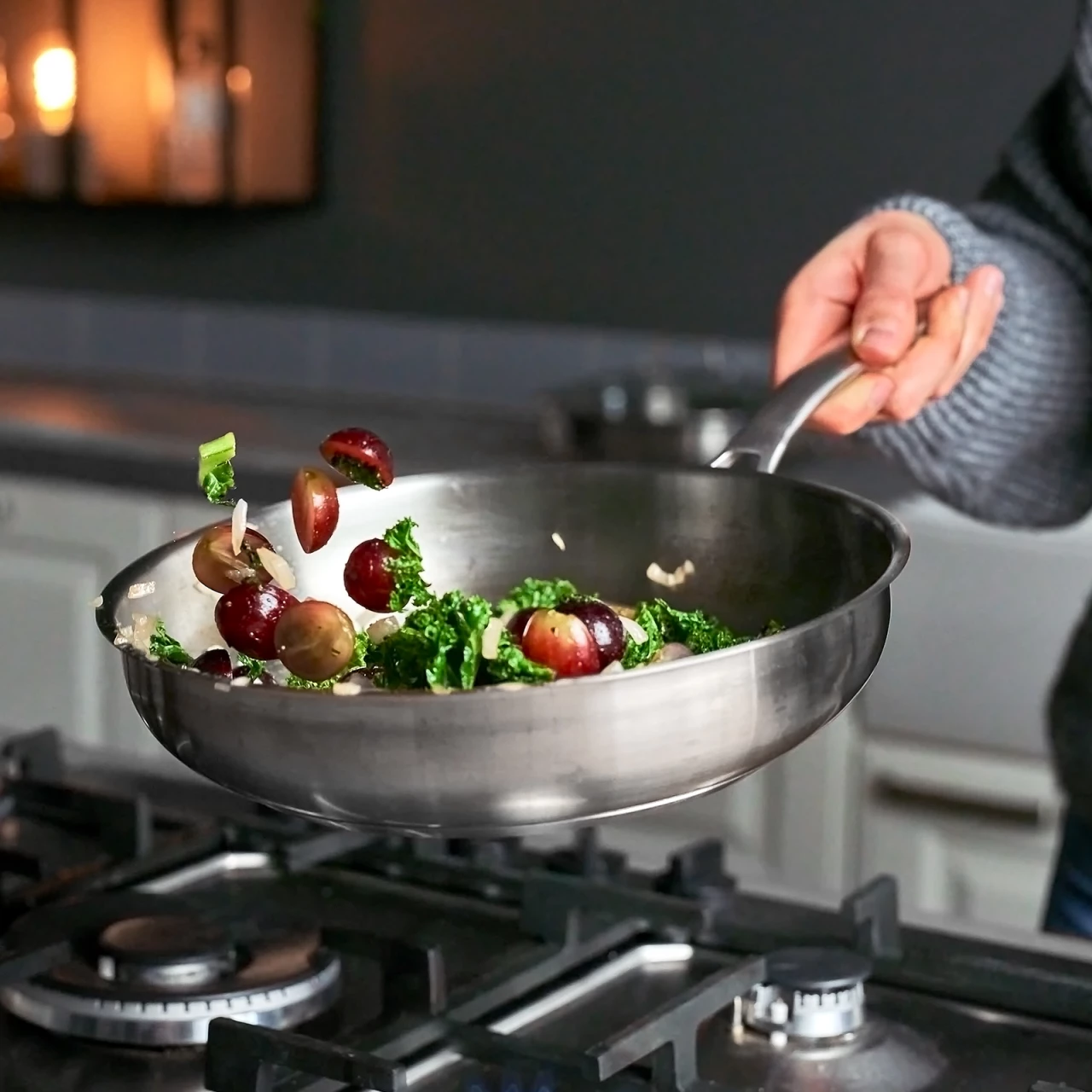 - Grifflänge: 17 cm (kleine Pfanne), 20 cm (mittlere / große Pfanne)