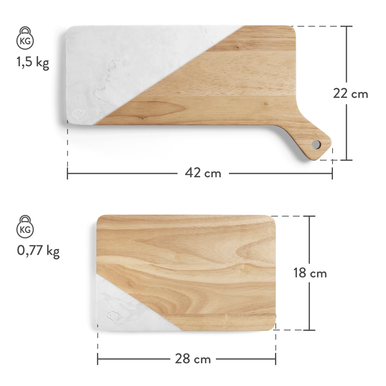 - Hochwertige Materialien: FSC-zertifiziertes Holz des Kautschukbaums und Weißer Marmor