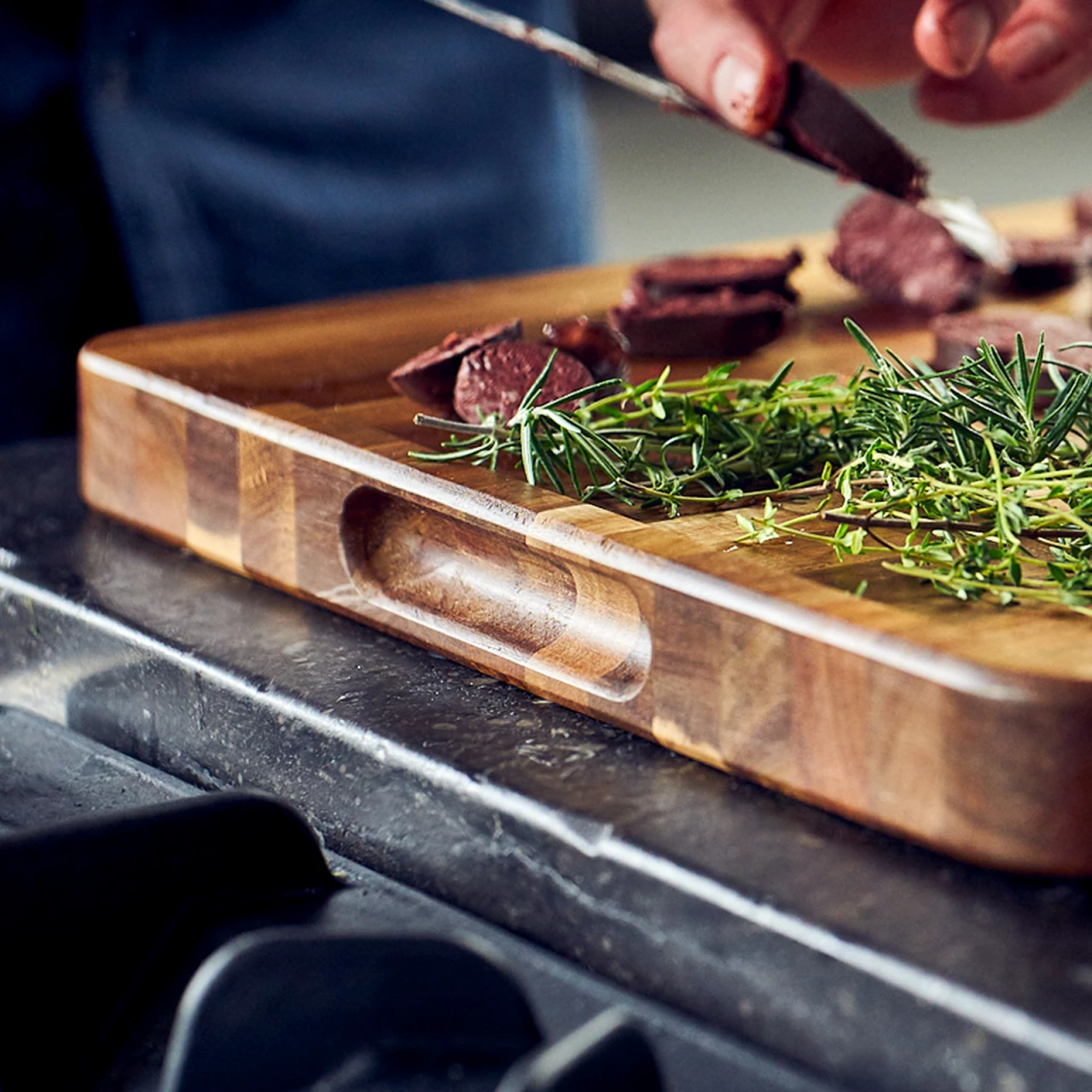 - Solides Schneidebrett aus widerstandsfähigem Akazienholz