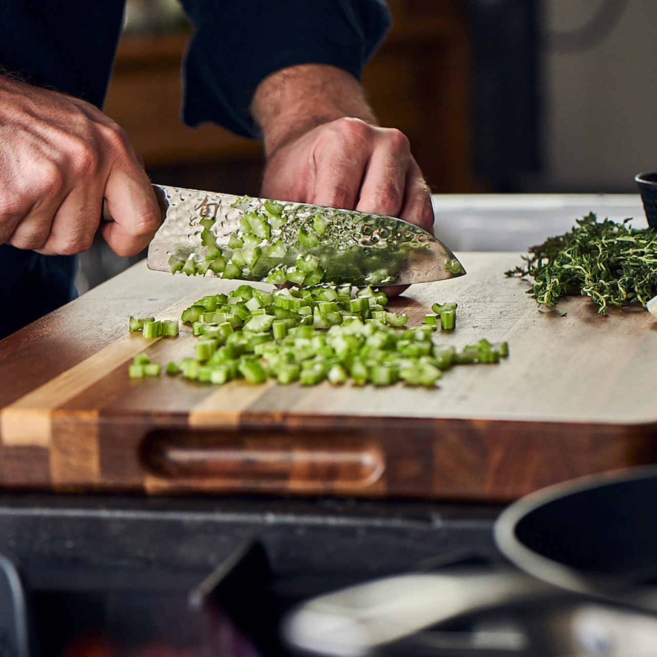 - Solides Schneidebrett aus widerstandsfähigem Akazienholz