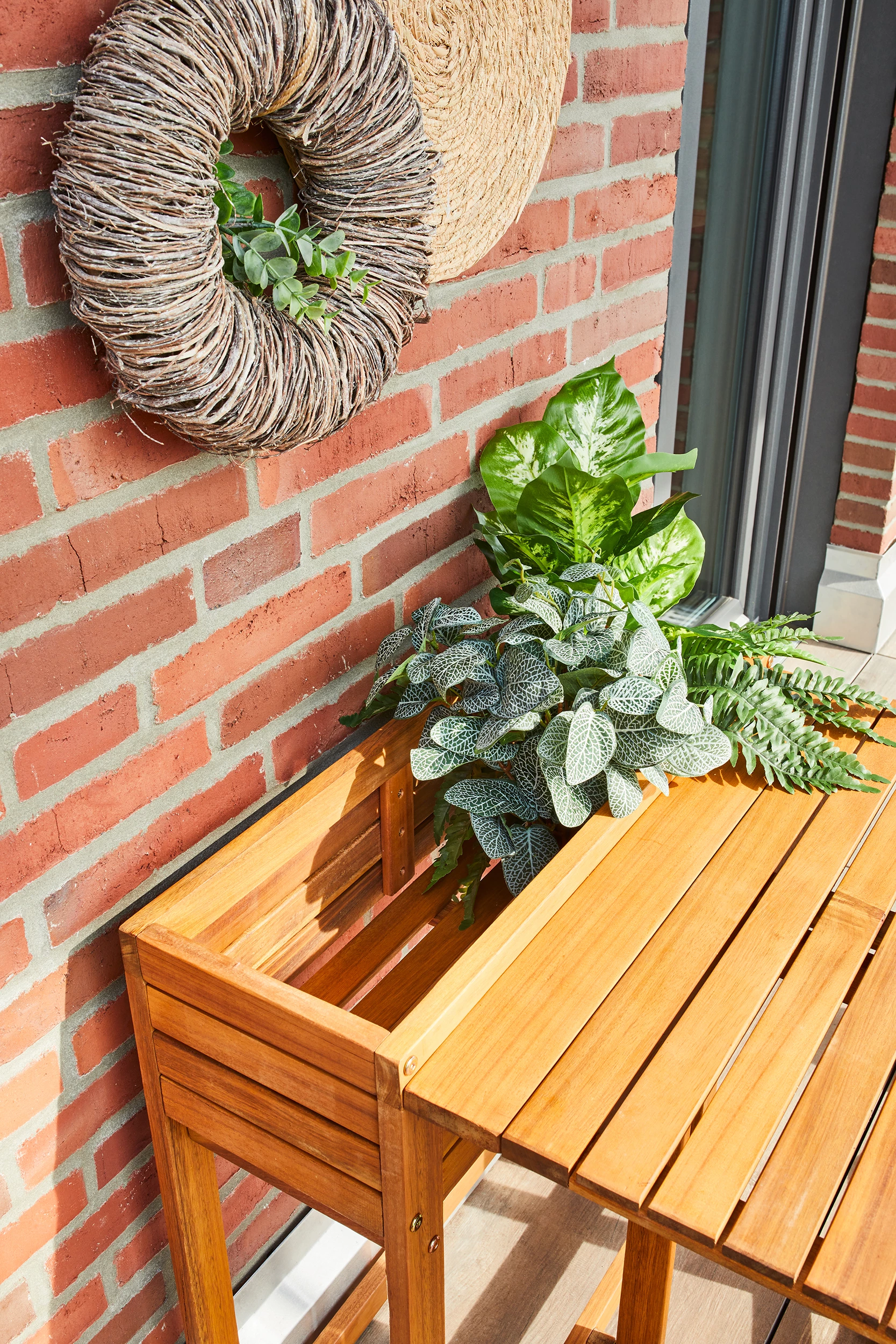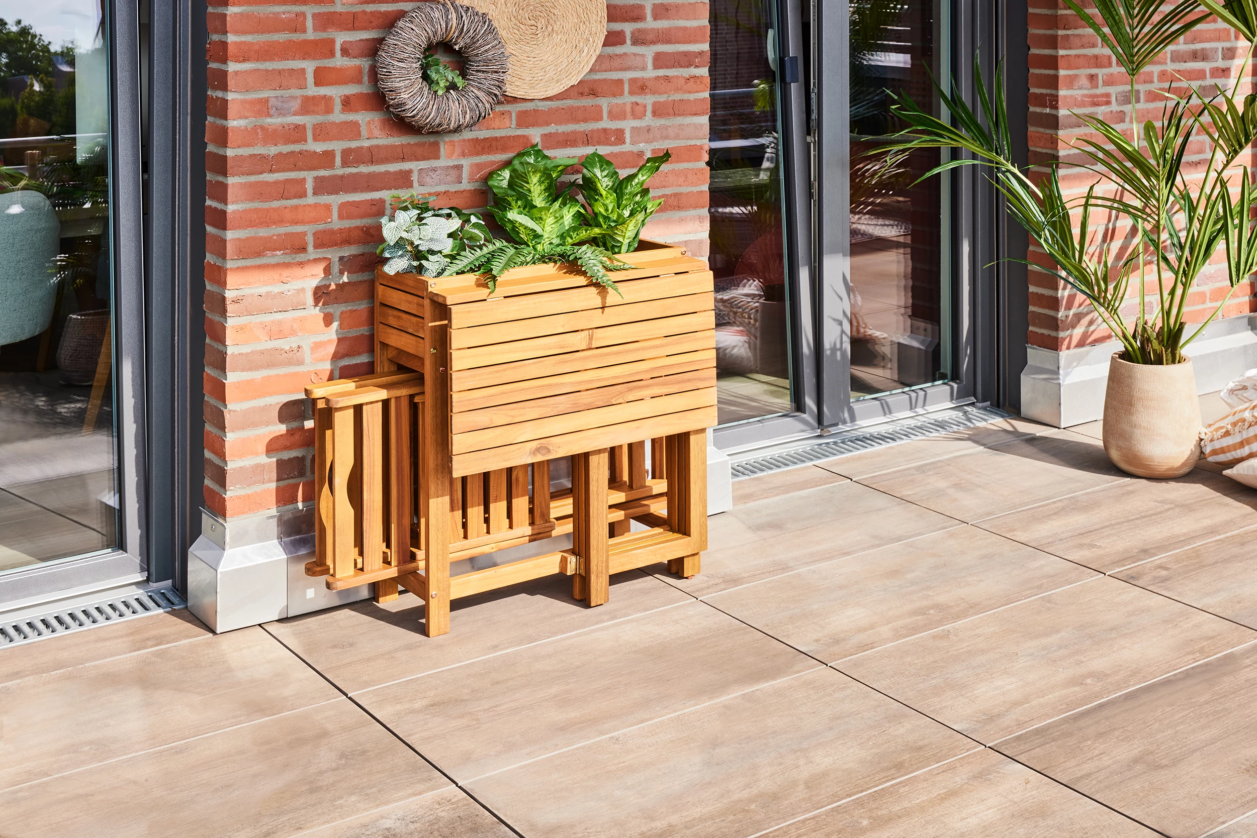 Klein aber fein. Das klassische Balkonset aus Akazienholz ist klappbar und leicht zu verstauen. Der Tisch hat eine praktische Ablagekonsole zur Verschönerung mit Blumen oder zum Abstellen von Flaschen und Gläsern. Genau das richtige für den kleinen Balkon oder kleine Gartenecken.