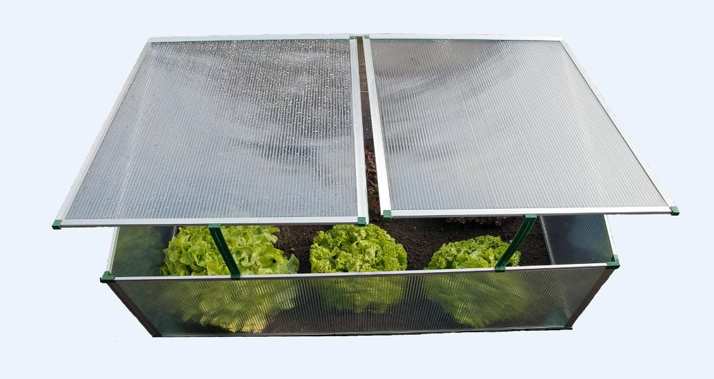 Das TrendLine Frühbeet besteht aus Aluminiumprofilen mit Kunststoffverbindern und ist mit 4 mm starken Polycarbonatplatten eingedeckt.
