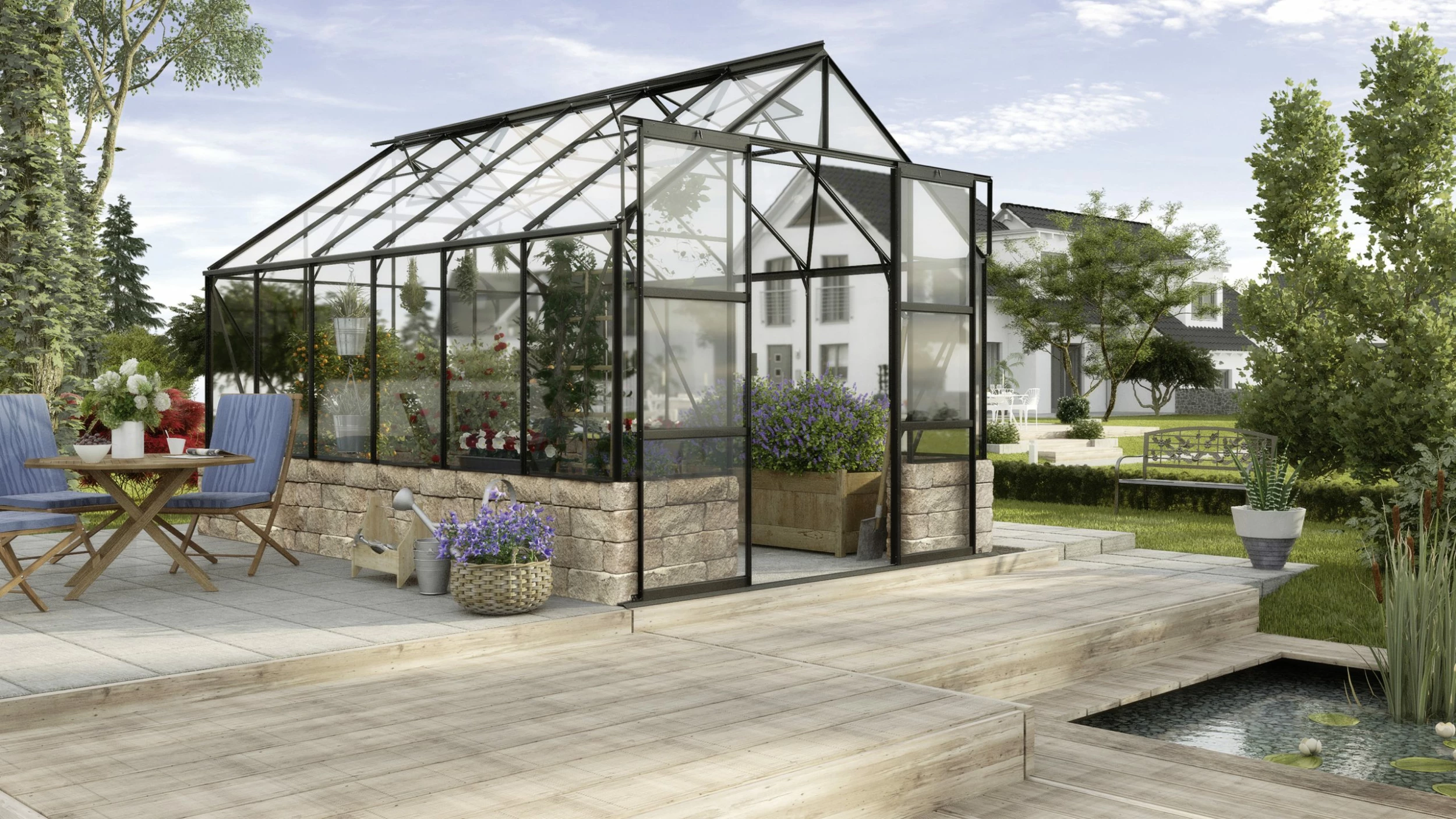 So wohnlich kann es im Grünen sein: Auf einem soliden Sockel stehend wird Ihr Gewächshaus schnell zum zweiten Zuhause und bringt dabei ein wenig englischen Stil in Ihren Garten. Das Cassandra hebt sich durch einen gemauerten Sockel vom klassischen, vollverglasten Gewächshaus ab: Der diskrete Sichtschutz, das freundliche Klima und die solide Gesamterscheinung verleihen dem Gewächshaus eine hohe Wohnlichkeit für viele gemütliche Stunden im eigenen Grün. Der Sockel kann nach eigenen Wünschen gestaltet werden. Das Set besteht aus dem Gewächshaus sowie den TÜV zertifizierten, aus Beton gegossenen Werksteinen für den Sockelbausatz. Die Steine bilden ein wertiges Mauerbild und haben zudem eine sehr hohe Farbbeständigkeit.