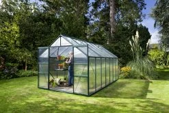 Durch sein großzügiges und offenes Design lädt das Mars den aktiven Gärtner zum Arbeiten und Genießen ein. Dieses Modell eignet sich für den fortgeschrittenen Gärtner. Das Modell hat ein kittloses Verglasungssystem mit rostfreien Glasfederklammern und eine leichtgängige, kugelgelagerte Doppelschiebetür mit einer Breite von 122 cm und einer Höhe von 175 cm. Jedes Modell ist serienmäßig mit zwei Dachfenstern und Regenrinnen ausgestattet.