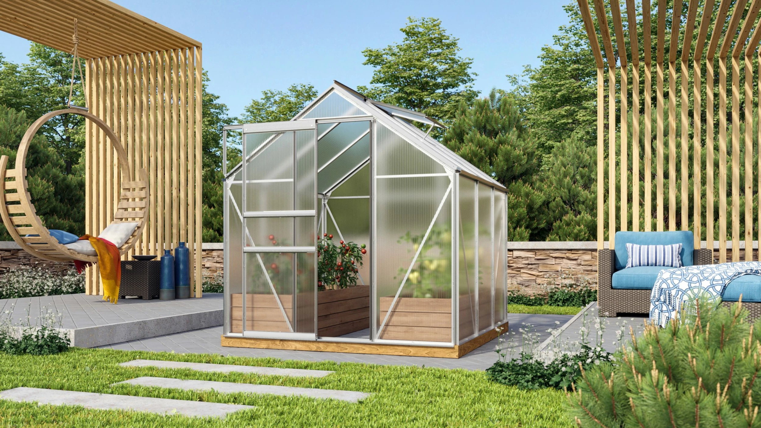 - Material: Aluminium / Polycarbonat-Hohlkammerplatten