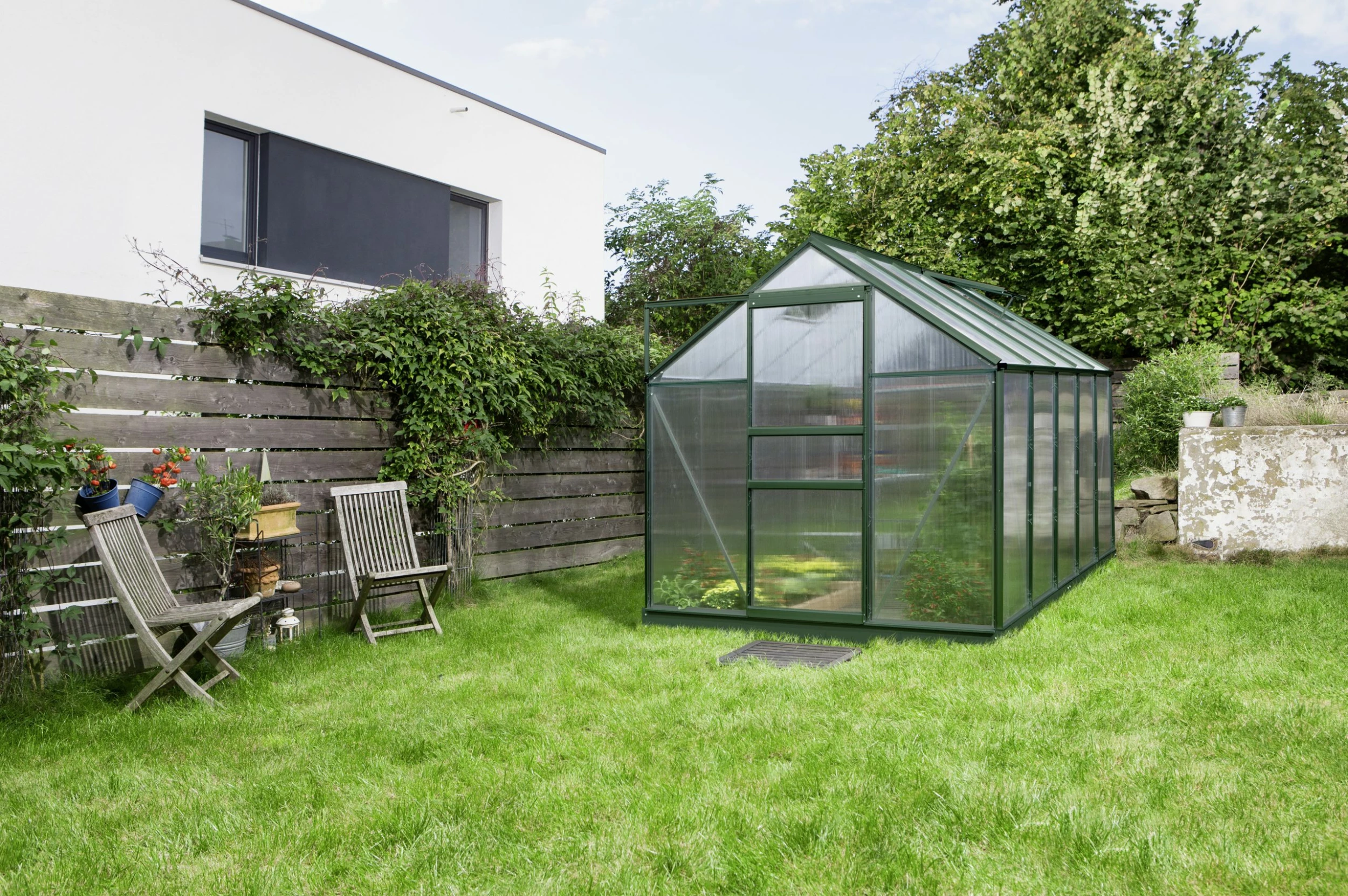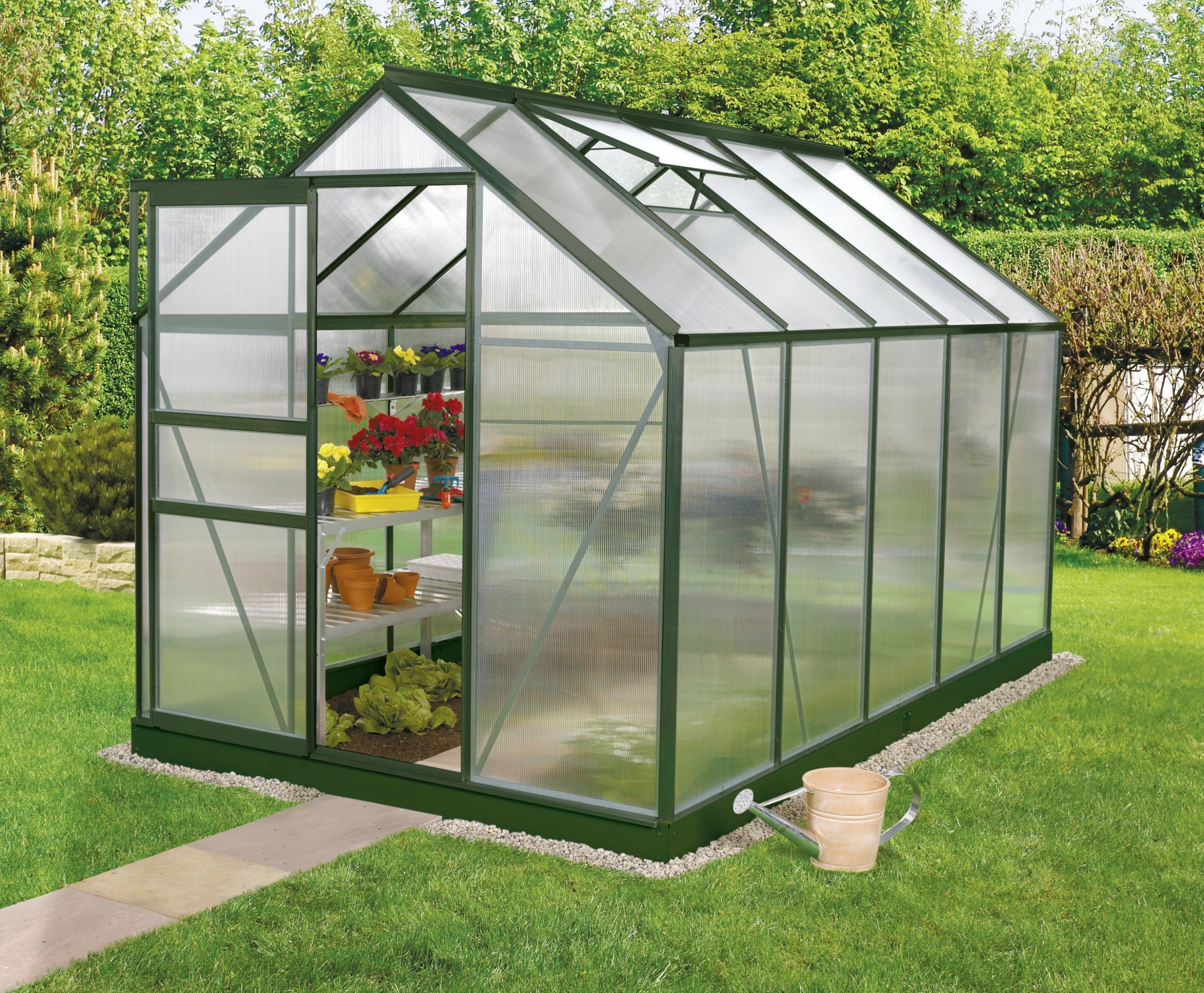 Venus ist die beste erste Wahl: Unter dem Dach unseres beliebten Modells machen sich selbst Einsteiger mit wenig Aufwand viel Freude. Auch die Regenrinnen gehören zur Standardausstattung. Das Modell Venus hat ein kittloses Verglasungssystem mit rostfreien Glasfederklammern und eine lichtgängige, kugelgelagerte Schiebetür mit einer Breite von 61 cm und einer Höhe von 161 cm. Für den ebenerdigen und rechtwinkligen Aufbau des Gewächshauses ist ein Fundamentrahmen (H 12,5 cm) aus verzinktem und farbbeschichtetem Stahlblech besonders hilfreich.